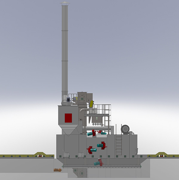 H型鋼結(jié)構(gòu)拋丸機為輥道通過式拋丸清理設(shè)備,由拋丸清理室、拋丸器總成、丸料循環(huán)凈化系統(tǒng)(螺旋輸送器、提升機、分離器、彈丸控制系統(tǒng))、輥道輸送系統(tǒng)、吹掃機構(gòu)、檢修平臺、除塵系統(tǒng)、氣控系統(tǒng)、電氣控制系統(tǒng)等組成。